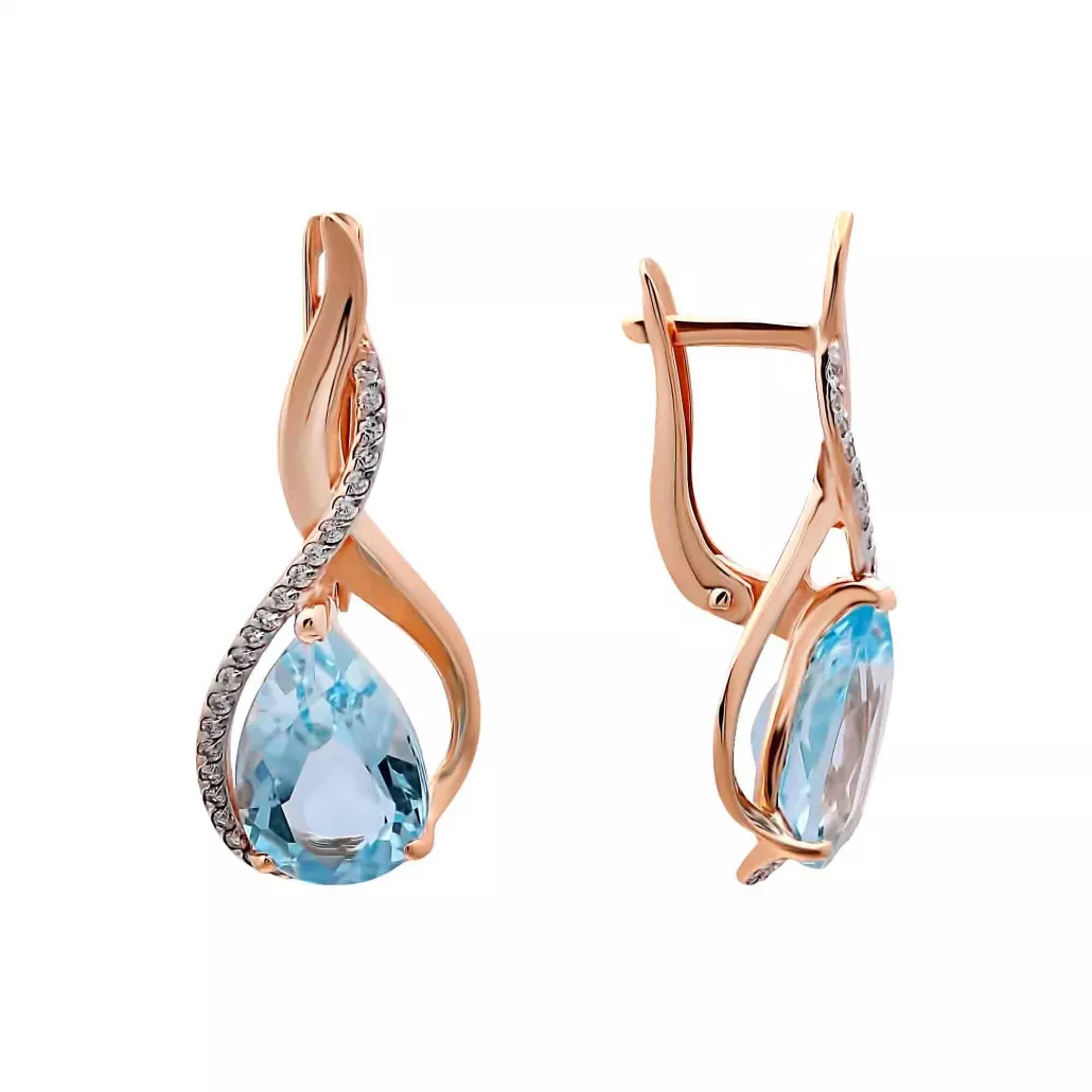 - Серьги с топазом и фианитом из золота