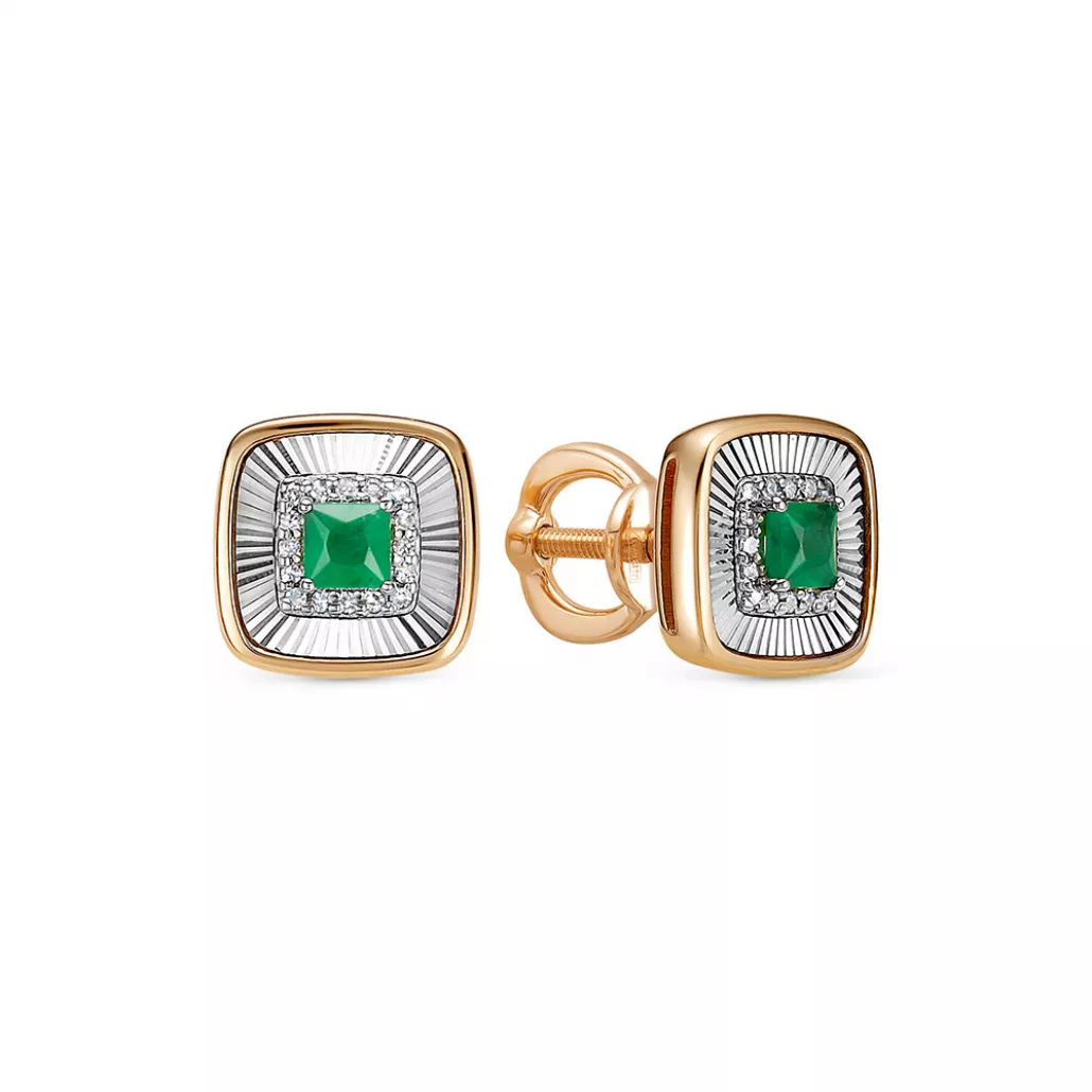Пусеты с бриллиантами с изумрудом из золота